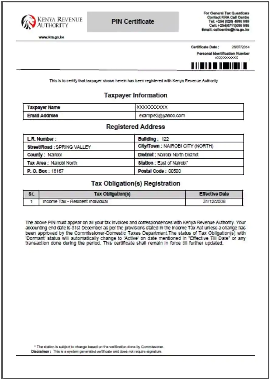 Internet (KRA pin)